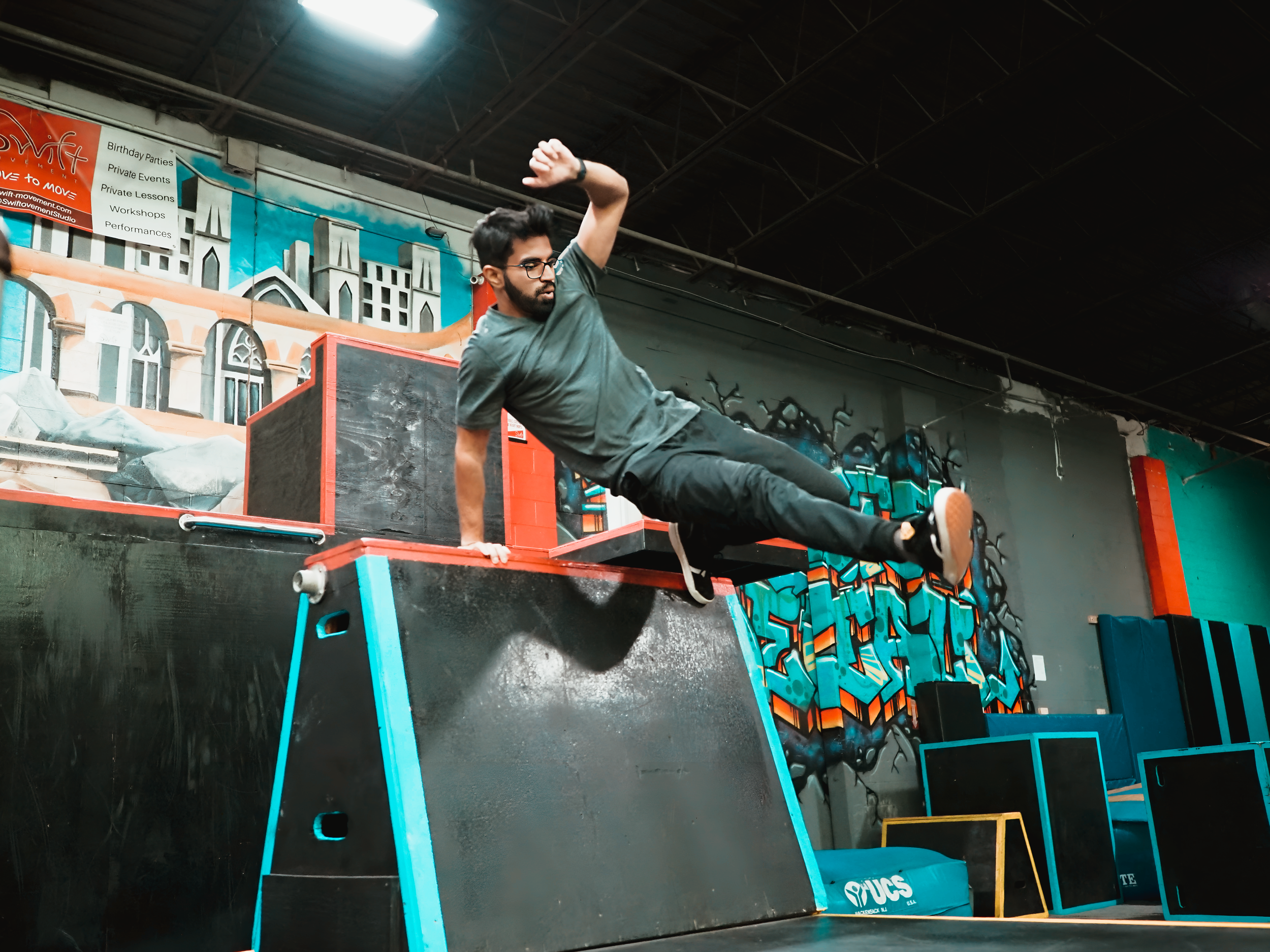 The above video is a small glimpse into my movement proficiency across many disciplines-- parkour, acrobatics, stunts, and basic tricking. Though not fully comprehensive, this video accurately reflects my current level in my training as it pertains to general parkour/ acro curriculum and my comfortability with dynamic movement, flow, and improvisation. I’ve received formal certification through APK (American Parkour) at Swift Movement Studio in April, 2021.